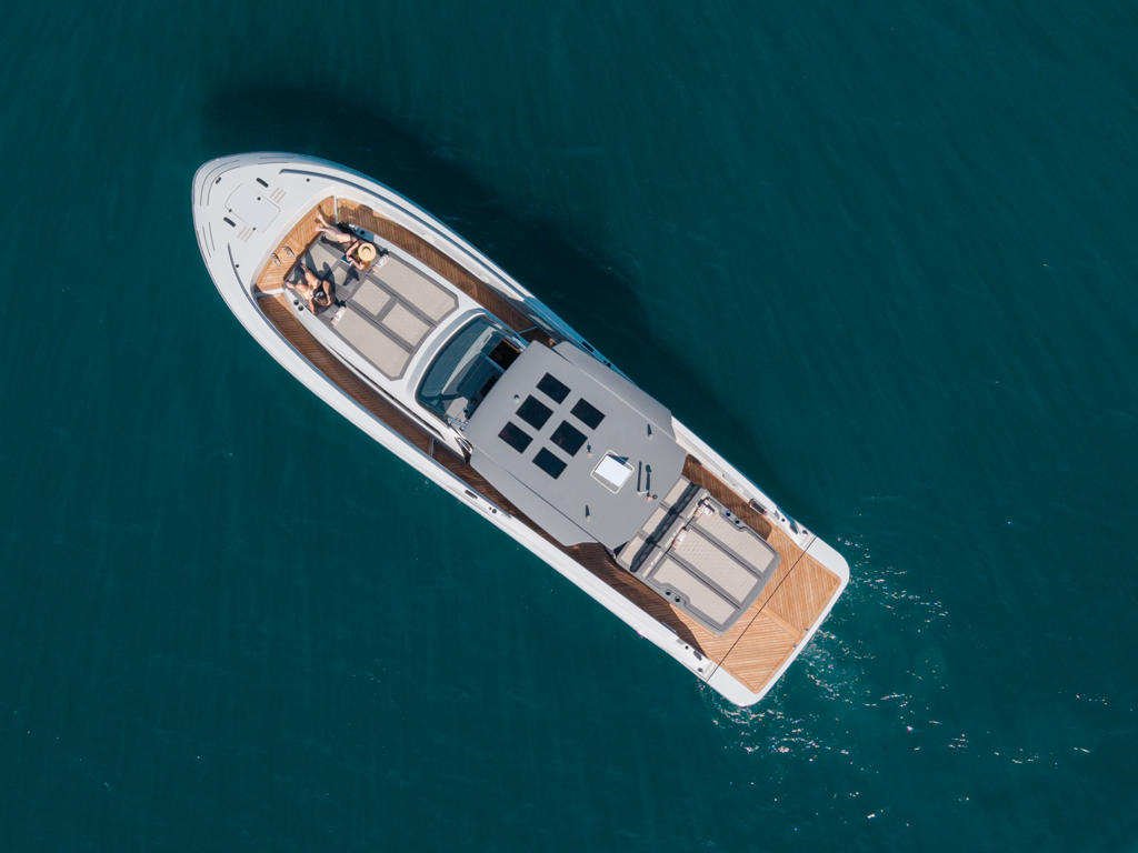Stap voor één dag aan boord van de Canados 49 Grand (2025) en transformeer uw dag op het water in een onvergetelijke, luxueuze belevenis onder begeleiding van een bediende en schipper.