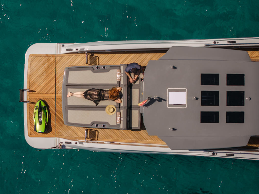 | Uitrusting | Zonnekap, zonneloungers (voor en achter), buiten zithoek, toilet, Bluetooth muziekverbinding, JBL geluidssysteem, airconditioning |