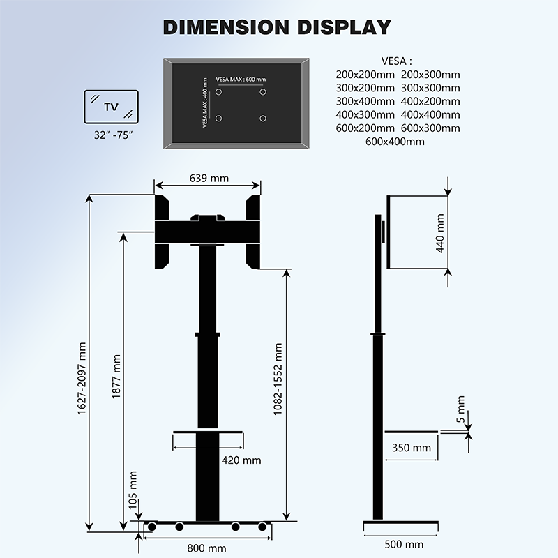 1. Universele VESA compatibiliteit: de Exo is ontworpen met jouw gemak in gedachten. Met een indrukwekkende maximale VESA-maat van 600×400 mm is deze standaard geschikt voor televisies variërend van 32 tot 75 inch. Of je nu ontspant voor je favoriete programma’s op een compact scherm of een meeslepende home cinema-ervaring zoekt, de Exo is er klaar voor.