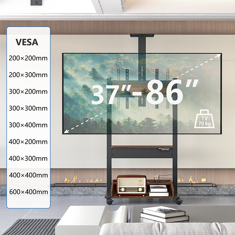 Pas eenvoudig de hoogte van je TV aan met de elektrische bediening, zodat iedereen perfect zicht heeft. Geschikt voor diverse TV-merken en -maten dankzij de flexibele VESA-opties (tot 600x400mm) en een indrukwekkend draagvermogen van 70 kg. De vier soepel draaiende wielen met remfunctie maken de standaard gemakkelijk verplaatsbaar.